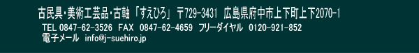 また、店主が「古美術品」のインターネット販売もしております。掘り出し物が数多くあります。是非、お立ち寄り下さい。